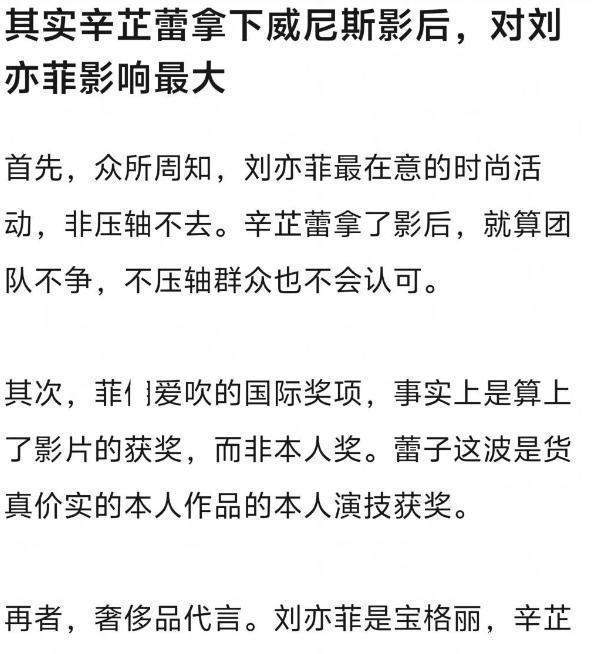 在第82届威尼斯电影节受奖礼上,辛芷蕾捧起最好女演员奖杯时说谈:"刚入行时总有东谈主跟我说,'你这长十分不了主角',但今天站在这里,我念念告诉通盘小姐,别被那些责问你的声息打倒。"