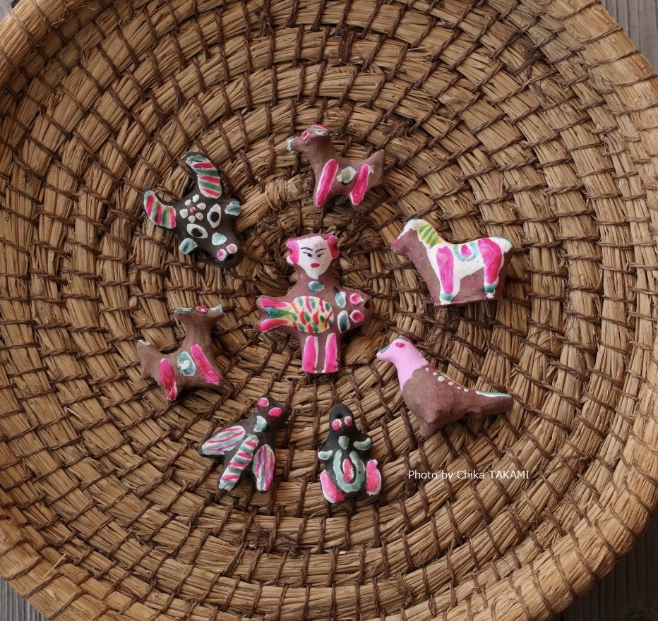 它的制作工艺是拿当地红黏土手抓成型,用刮刀抹平接缝,放个一礼拜晾干,然后送进900度的窑炉后烧制成型。