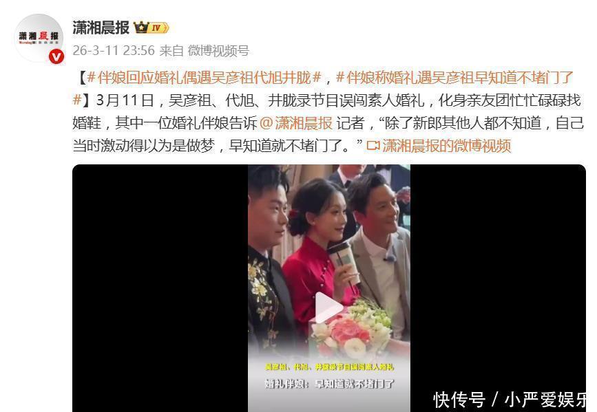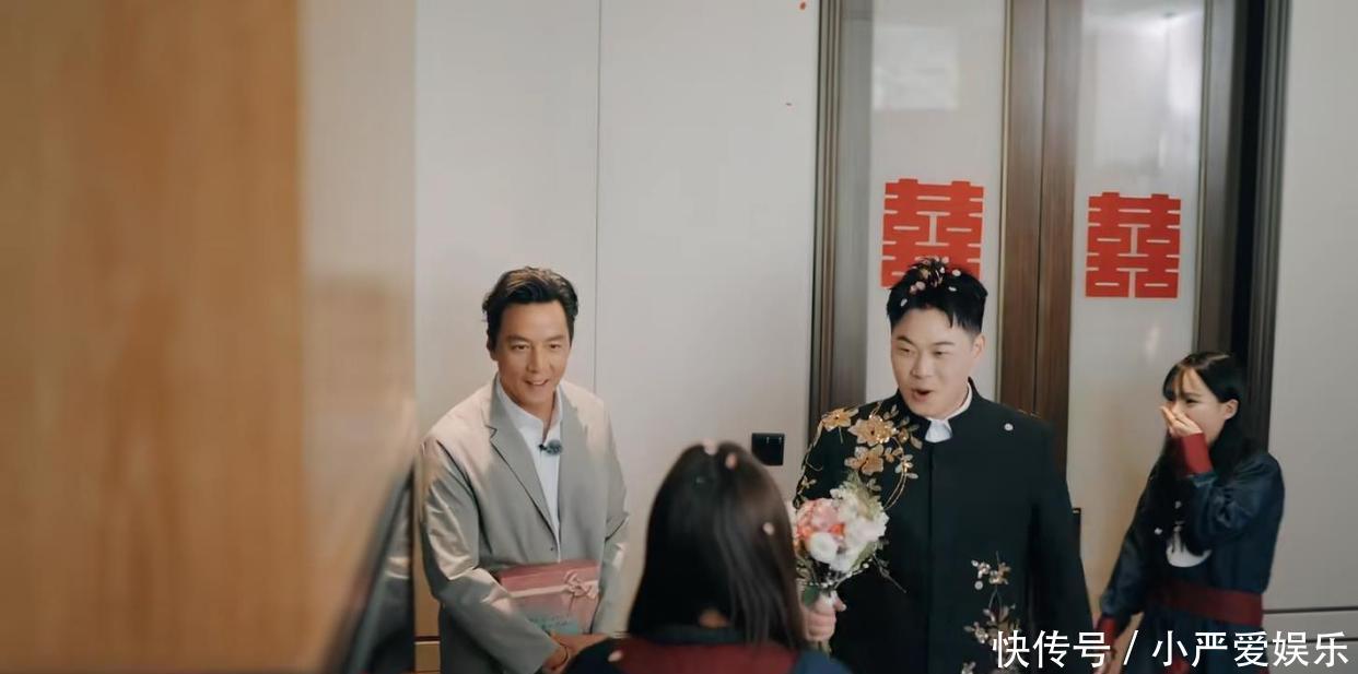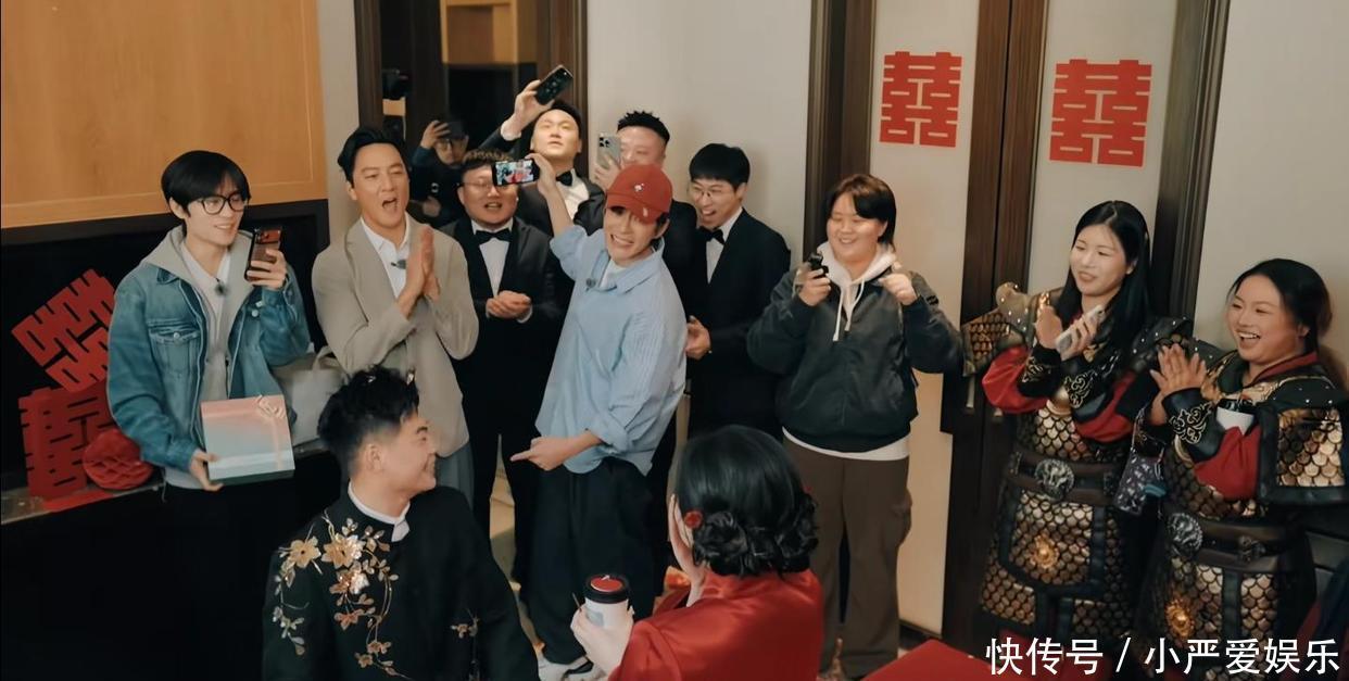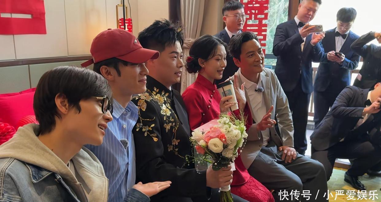 最戏剧性的一幕发生在堵门当作。当伴娘们绽开门,准备“为难”一下新郎时,门外站着的居然是巨星吴彦祖本东说念主!现场片刻被惊喜的尖叫声吞并。接下来的画风更是毫无明星牵涉:吴彦祖平直趴在地上,正经帮新郎寻找被藏起的婚鞋,并奏效完成任务;代旭头戴喜庆的小红帽,忙着分发饮品,化身厌烦组组长;井胧则用手机纪录下这难忘的一切。三东说念主还针织地为新东说念主奉上了“一见倾心”等道喜,号称“一条龙”千里浸式助婚。