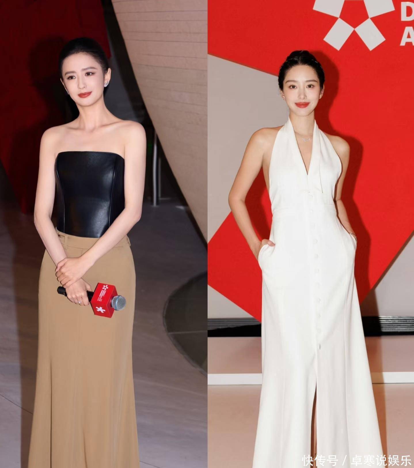 最绝的是杨采钰和佟丽娅,两位齐是姆妈级别,杨采钰颓靡孤身一人白色挂脖长裙大方又气质,佟丽娅玄色抹胸皮上衣搭配卡色长裙和睦又优雅,两东谈主坐在一谈一黑一白对我眼睛太好了吧!果然,魔力值和身份年岁无关,敢打破、够自信就超亮眼。