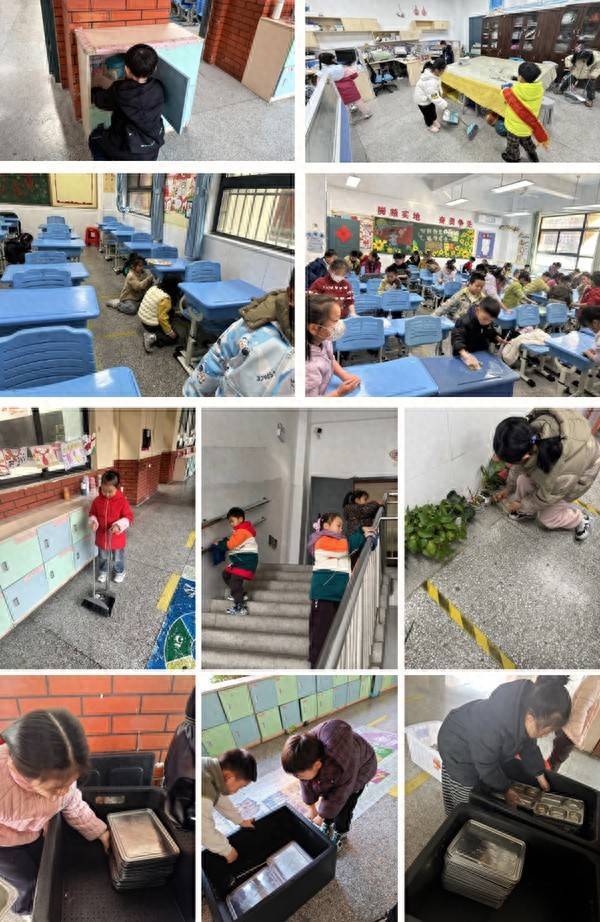 课间的校园里,处处是孩子们极力的身影。有的中队忙着整理班级储物柜,把竹帛文具摆放得整整王人王人;有的小队拿着抹布,仔细擦抹楼梯扶手和走廊雕栏,不放过任何一个边缘;疼爱绿植的孩子们,轻轻为校园里的花卉浇水松土,呵护一针一线的成长;还有的班级施展创意,手绘“轻声缓步”“爱戴公物”等暖心教导牌,为校园增添文静气味。食堂里,“餐桌小卫士”们主动协助整理餐具;办公室内,孩子们端来温水、擦抹桌面,用甜甜的问候抒发对安分的敬意,16个班级各有侧重,却一样饱含着就业他东谈主的热忱。