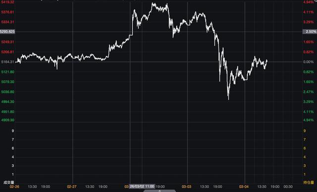 从盘面来看,3月2日,现货黄金开盘后速即拉升,一度冲高至5419.32好意思元/盎司。但第二日就急转直下,跌破5000好意思元/盎司大关。3月4日,放胆发稿,现货黄金在5100好意思元/盎司上方捏续触动。