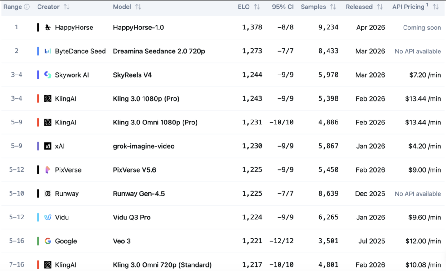 AA视频竞技场设四大中枢赛说念:文生视频(无音频)、图生视频(无音频)、文生视频(带音频)、图生视频(带音频)。规定4月9日的最新数据,在纯画质维度,HappyHorse仍是开采总揽地位;但一朝进入音画交融,它的最初上风并莫得那么显明。