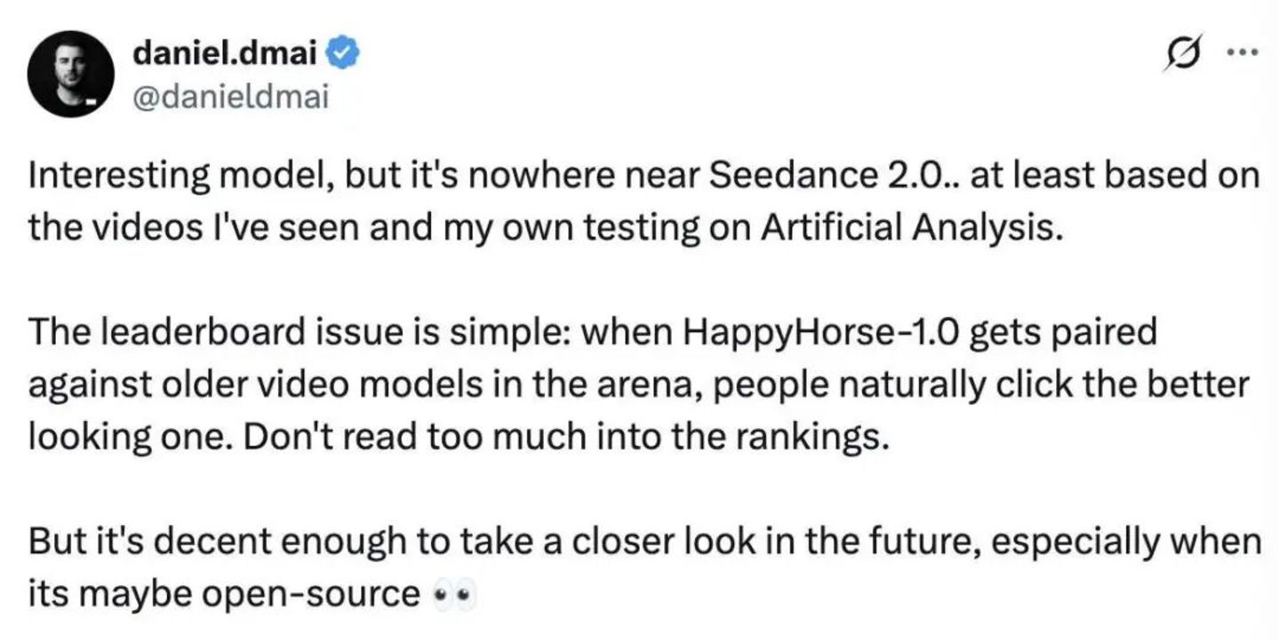 X用户daniel.dmai更是口快心直:“别把排名太当回事。当HappyHorse遇到的都是些旧模子时,公共天然会选阿谁看起来更自得的。它跟 Seedance2.0比还差得远。”