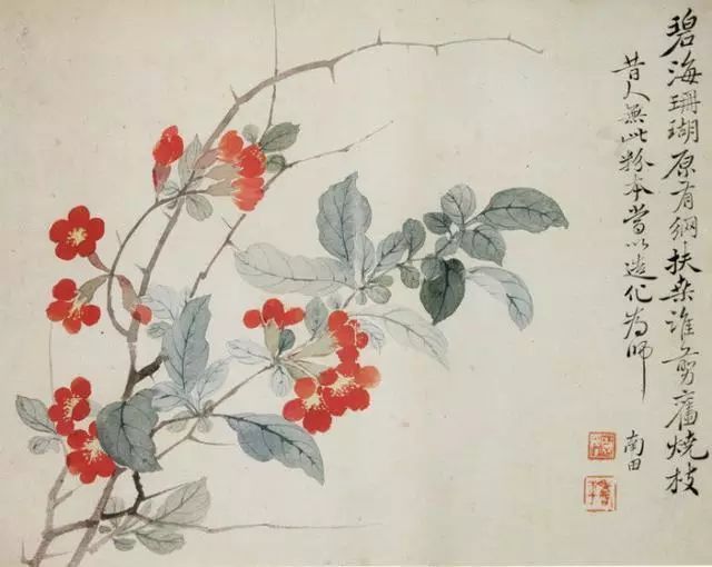 恽寿平的艺术理念和技法对清代画坛影响潜入,造成"家家南田,户户正叔"的盛况,常州画派画家达百东说念主之多。他的没骨花草画被尊为"写生方正",其极新雅丽的立场成为清代院体花鸟的挫折典范。