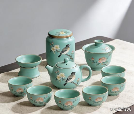 第六款:青瓷手绘茶具套装——一盏清茶,敬岁月静好
